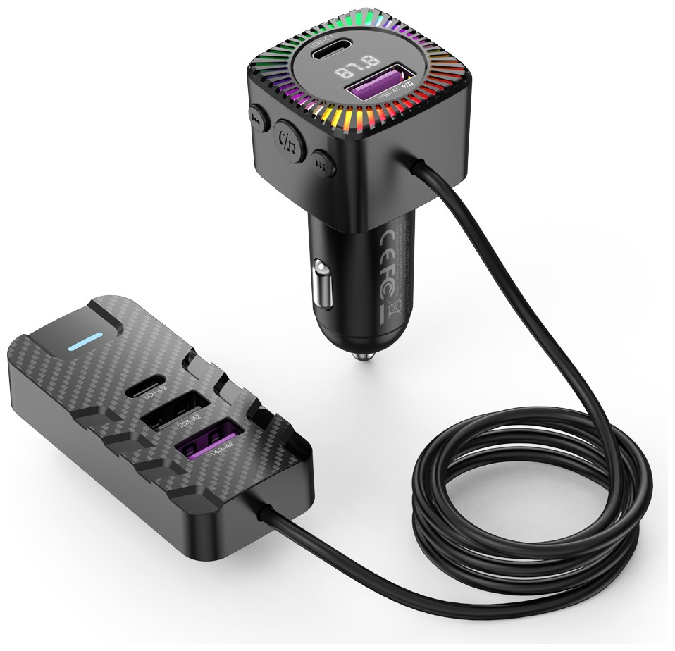 XO BCC13 FM transmitter is a device that will be useful for every driver who does not have a USB or AUX port. With a transmitter in your car, you dont have to worry about a discharged phone, tablet or other portable device. You can charge them quickly and efficiently thanks to USB sockets. Using this product, you can also play music from your phone or even from a pendrive. Answer and reject calls, reconnect to the last number, change the frequency, manage songs and adjust the volume - all with one transmitter. BT v5.3 with a range of up to 10m Frequency range: 87.5-108MHz Maximum total current: 6.2A 5x USB