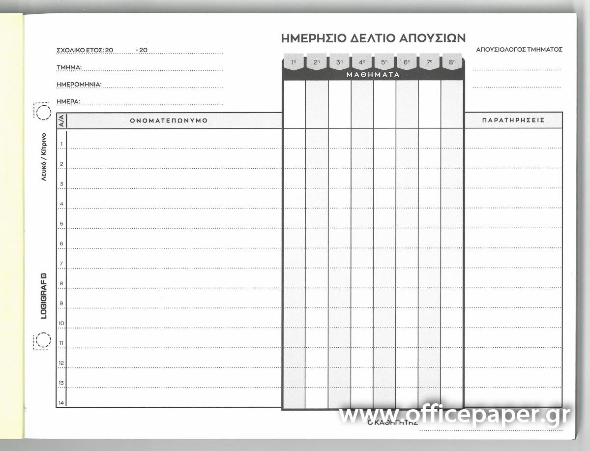 ΑΠΟΥΣΙΟΛΟΓΙΟ 14Χ21εκ. 50Χ2 (ΠΛΑΓΙΑ-ΑΥΤΟΓΡΑΦΙΚΑ)