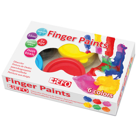 * Οι δακτυλομπογιές +efo είναι μη τοξικές και αφαιρούνται εύκολα με νερό από το δέρμα και τα περισσότερα υφάσματα. *Είναι έτοιμες για χρήση, αναμιγνύονται εύκολα και είναι άοσμες και αβλαβείς. *Συνιστώνται για παιδιά άνω των 3 ετών. *Η συσκευασία περιέχει 6 δοχεία των 35ml *Τα χρώματα που περιέχονται είναι κόκκινο, κίτρινο, πράσινο, μπλε, άσπρο, μαύρο.