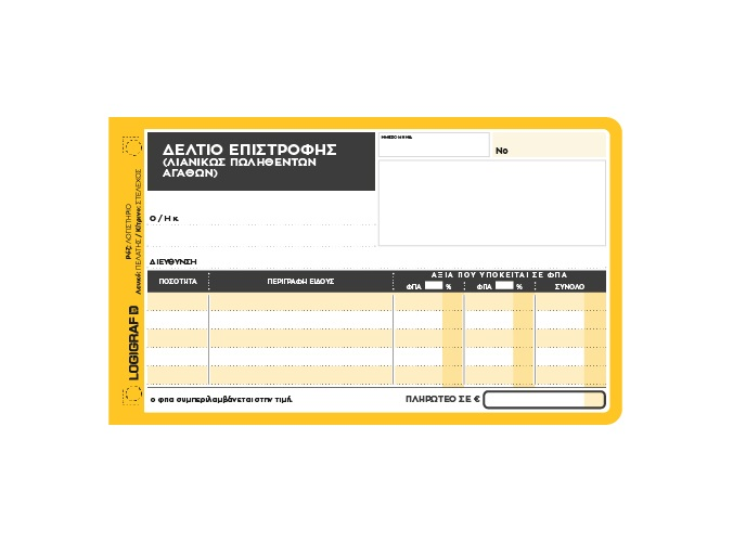 ΔΕΛΤΙΟ ΕΠΙΣΤΡΟΦΗΣ (ΛΙΑΝΙΚΩΣ ΠΩΛΗΘΕΝΤΩΝ ΑΓΑΘΩΝ) 12Χ17 50Χ2 ΑΥΤΟΓΡΑΦΙΚΟ 2ΣΥΝΤ.ΦΠΑ