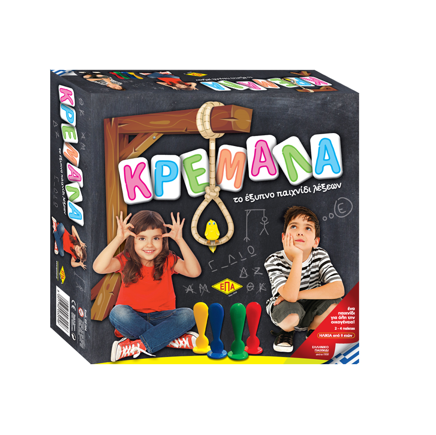 Το παραδοσιακό επικοινωνιακό παιχνίδι με λέξεις, για 2 παίκτες, από 8 ετών. Πρέπει να προλάβετε να «κρεμάσετε» τον αντίπαλό σας, πριν βρει τη λέξη που κρύψατε. Μόνο έτσι θα κερδίσετε το άθροισμα των βαθμών που έχουν τα γράμματα της κρυμμένης λέξης! Περιέχει δυο καρτέλες με διαφορετικής δυσκολίας πίστες, για να μπορεί εύκολα να προσαρμοστεί στην ηλικία και την ικανότητα των παικτών. Ένα διαχρονικό και διασκεδαστικό επιτραπέζιο παιχνίδι. Παράγεται στην Ελλάδα