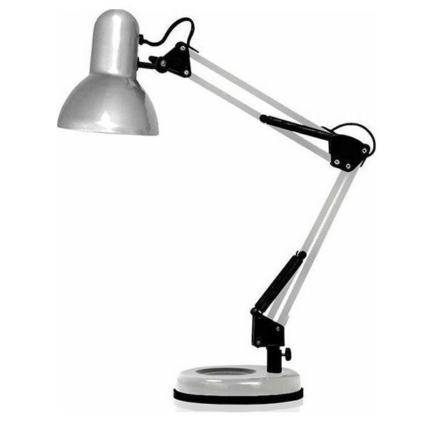 Επιτραπέζιο φωτιστικό γραφείου-σχεδιαστηρίου με ρυθμιζόμενο βραχίονα και βάση. Ντουί: Ε27 Διαστάσεις: Y53x15,5x15,5εκ. Χρώμα: Ασημί. Μήκος καλωδίου 1,55μέτρα.
