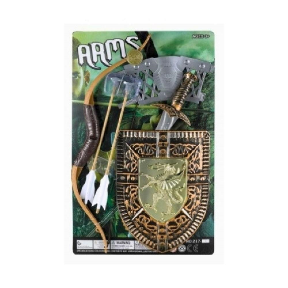 Το σετ περιλαμβάνει: ασπίδα, τόξο με 2 βέλη, σπαθί, περιβραχιόνιο.