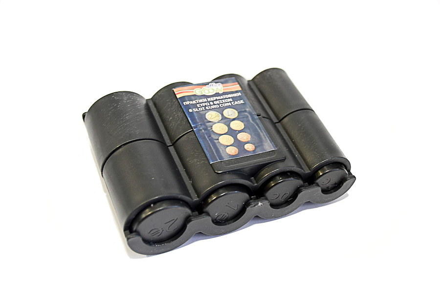 Κερματοδέκτης 8 θέσεων σε μαύρο γυαλιστερό πλαστικό.
