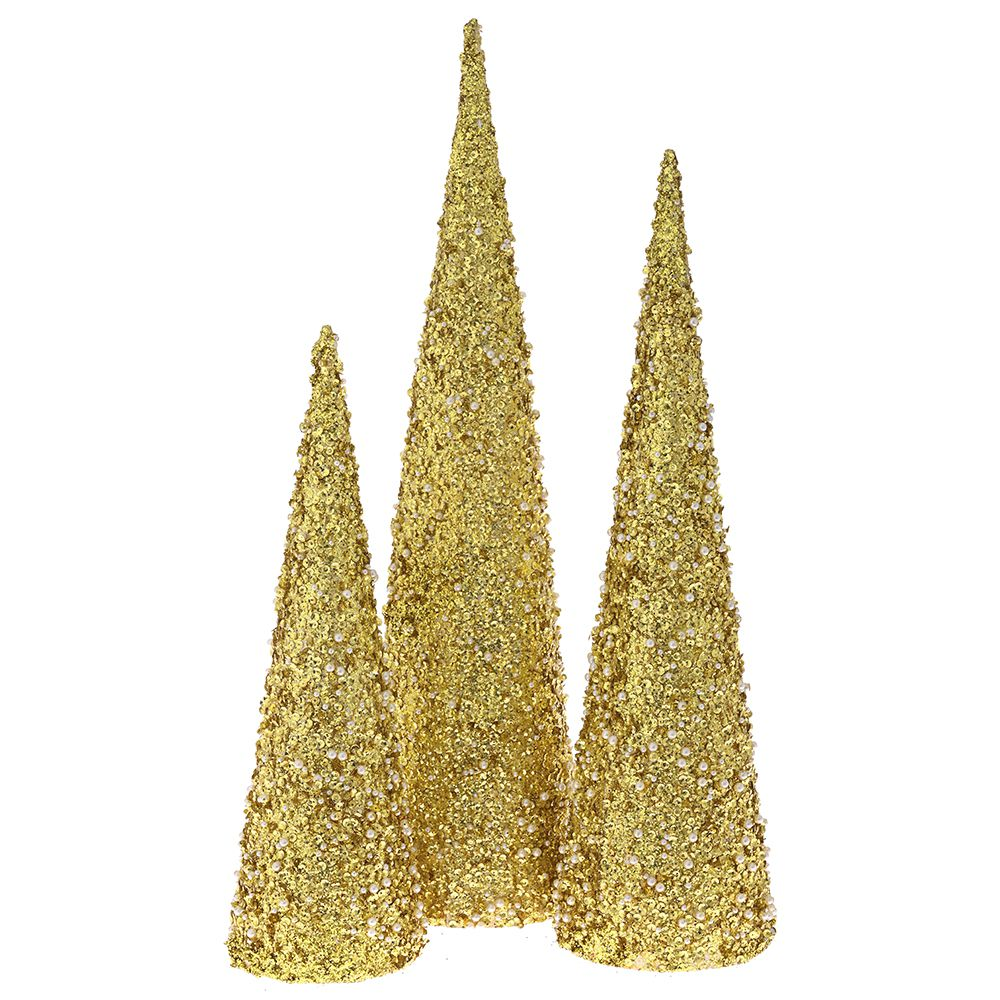 Χάρτινοι κώνοι σετ/3 τεμαχίων καλυμένοι με glitter και πέρλες ιδανικοί για διακόσμηση.