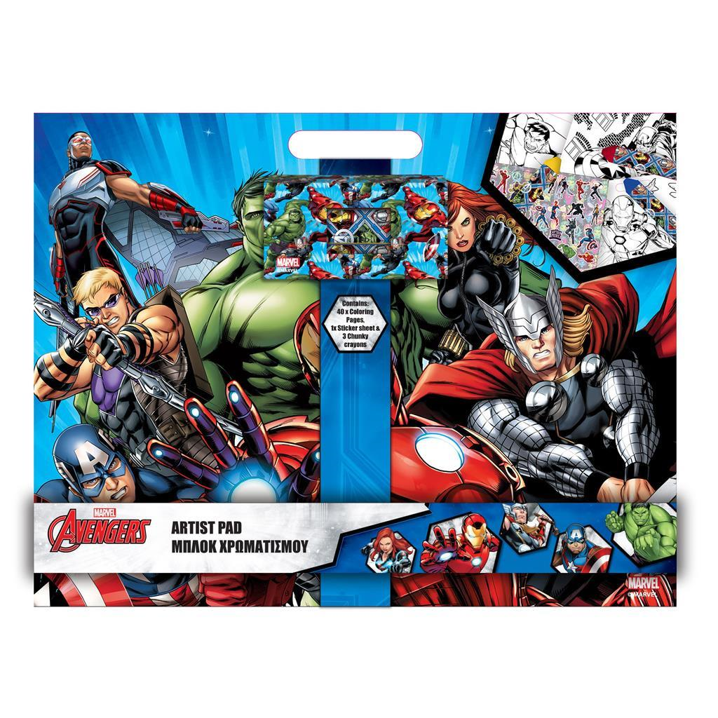ΜΠΛΟΚ ΜΕ 40 ΣΕΛΙΔΕΣ ΧΡΩΜΑΤΙΣΜΟΥ ΑΥΤΟΚΟΛΛΗΤΑ ΚΑΙ 3 ΚΗΡΟΜΠΟΓΙΕΣ AVENGERS