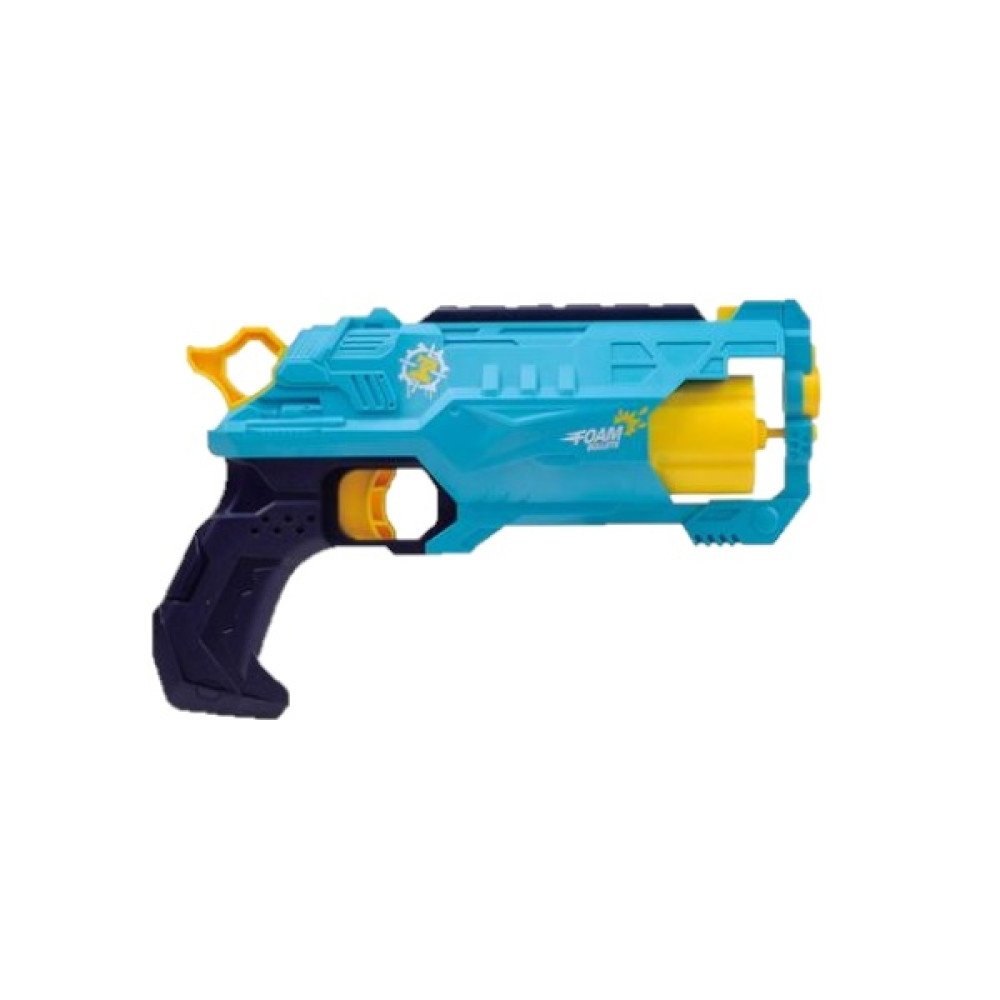 Όπλο revolver με 12 αφρώδεις σφαίρες. Κατάλληλο για ηλικίες 6+ Προσοχή! Δεν είναι κατάλληλο για παιδιά κάτω των 3 ετών, μικρά μέρη - κίνδυνος πνιγμού.