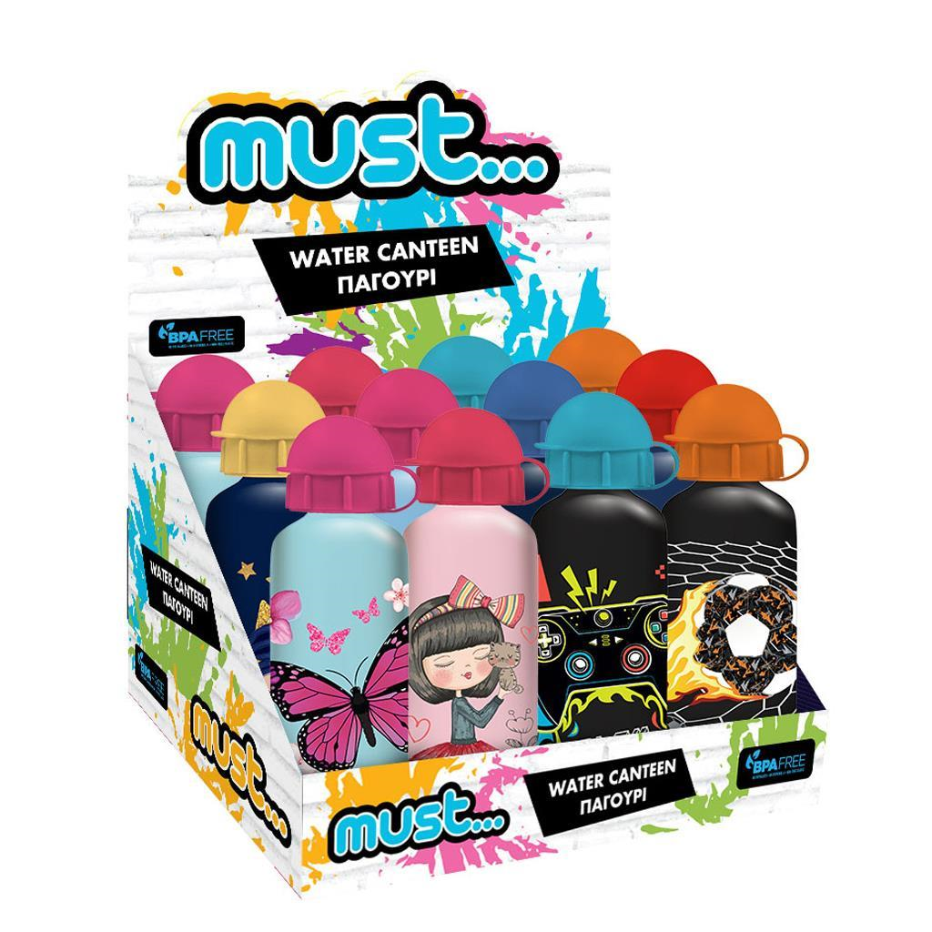 Παγούρι Παιδικό Must 500ml Αλουμινίου για Αγόρι και Κορίτσι 6,5x21 8 Σχέδια