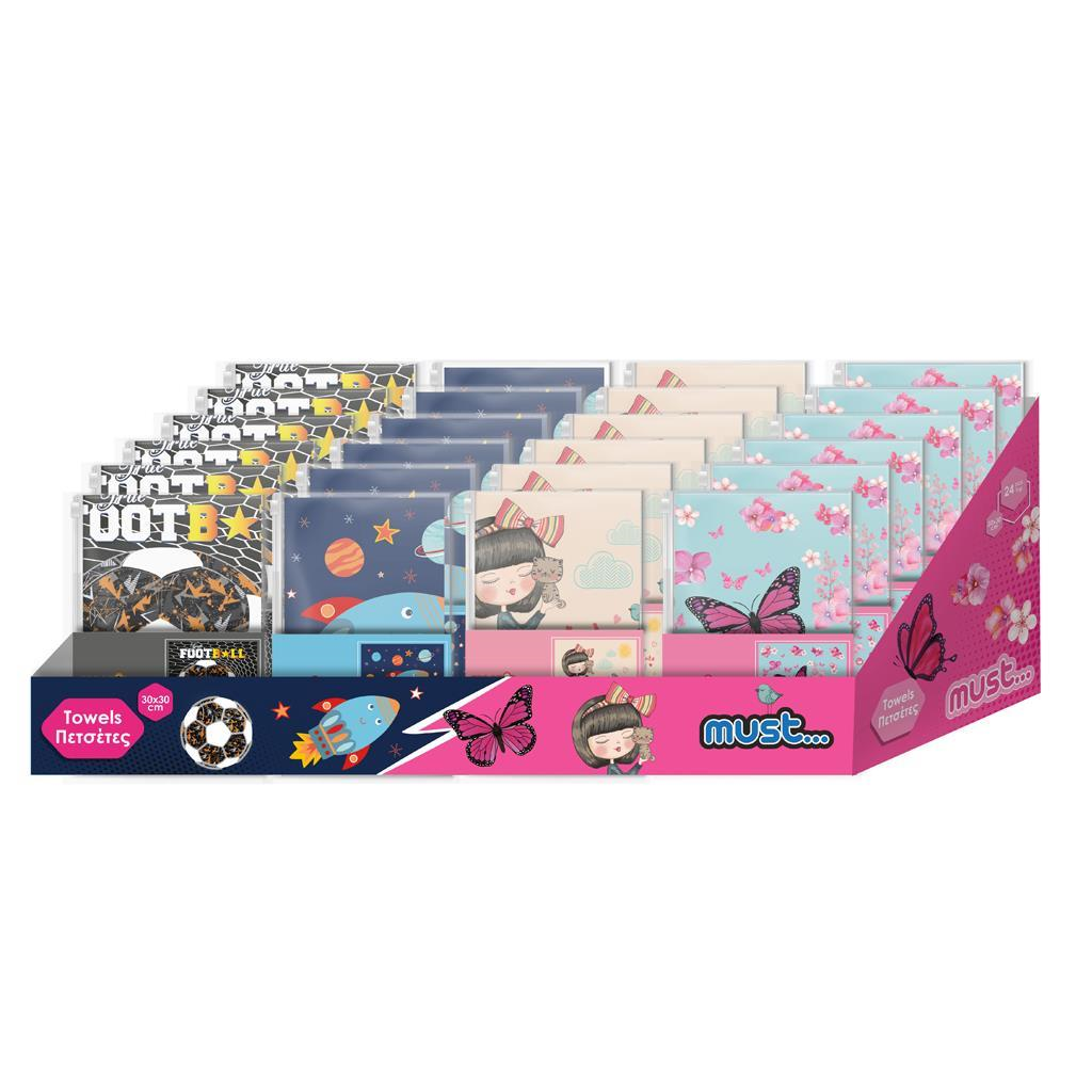Πετσετα Παιδική Must 30x30 σε Τσαντάκι Pvc 4 Σχέδια
