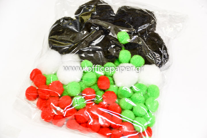 ΠΟΜ ΠΟΜ VALUE CRAFT 15-25-35mm 100TEM ΜΙΞ ΜΑΥΡ-ΚΟΚ-ΠΡΑΣ-ΛΕΥΚΟ