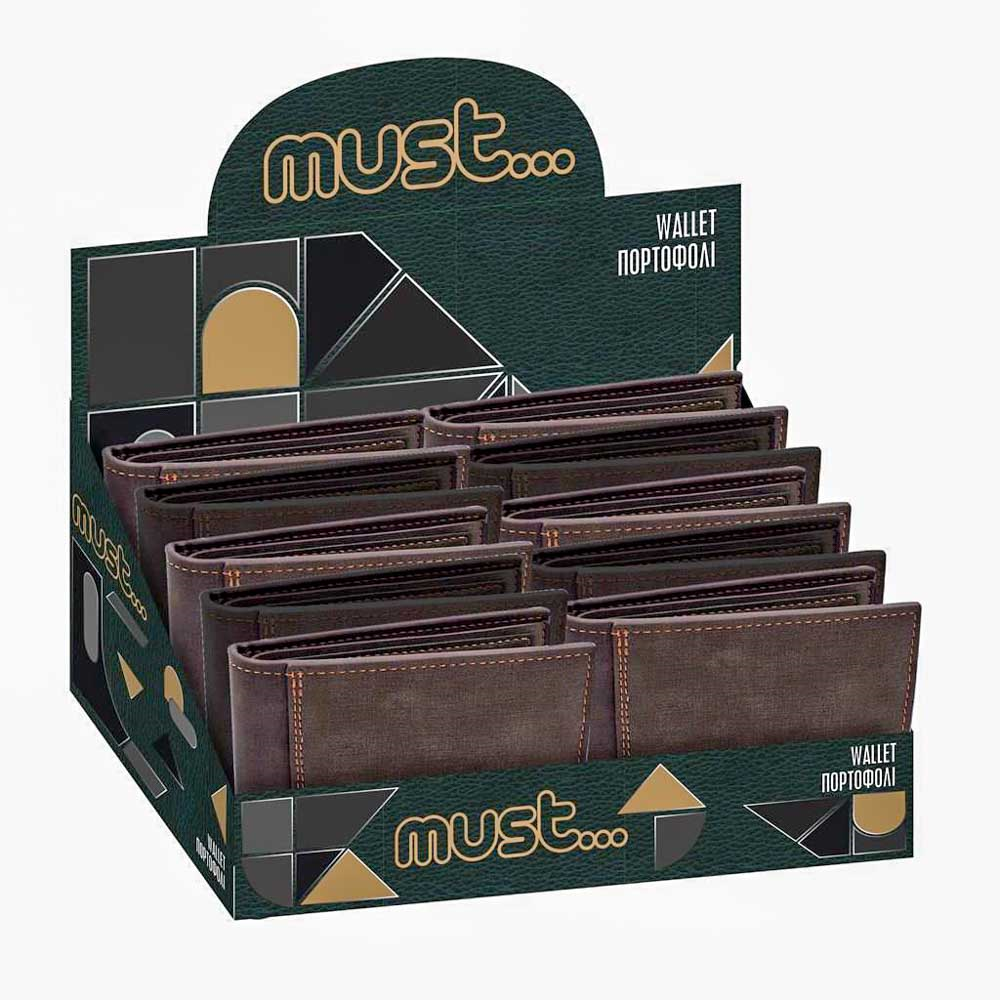 Πορτοφόλι Must ανδρικό με φερμουάρ σε μαύρο και καφέ χρώμα, ιδανικό για καθημερινή χρήση.