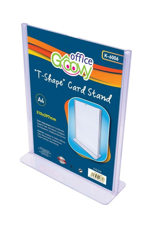 Το Σταντ Προβολής Groovy Μονόφυλλο Κ-6006 A4 είναι πολύκαλό επιτραπέζιο κάθετο stand με 2 όψεις για προβολή δύο εντύπων, κατάλληλο για ξενοδοχεία, γραφεία, σχολεία, συνέδρια, εστιατόρια κ.α.