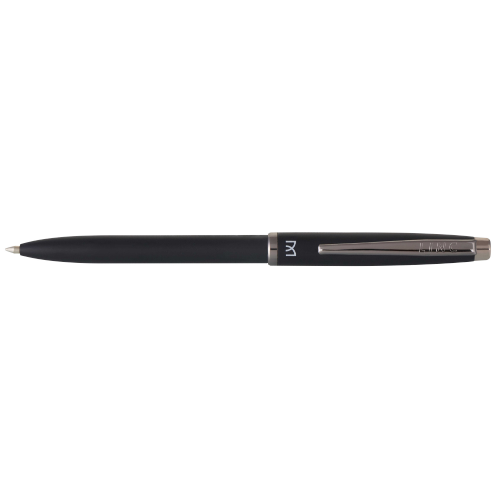 Ανθεκτικό στυλό με μεταλλικό σώμα σε μαύρο χρώμα, με inox λεπτομέρειες.