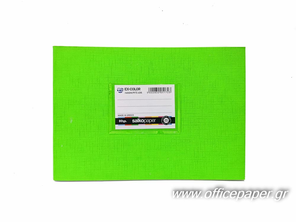 ΤΕΤΡΑΔΙΟ ΠΛΑΓΙΟ ΡΙΓΕ ΛΑΧΑΝΙ 14X20cm 40Φ.EX-COLOR 80γρ. ΕΛΛΗΝΙΚΟ ΠΡΟΙΟΝ