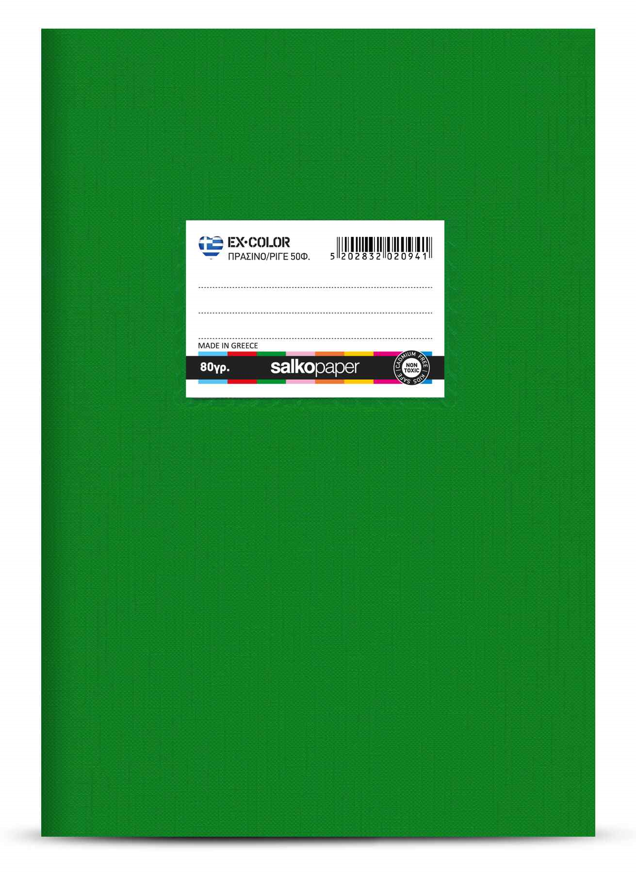 ΤΕΤΡΑΔΙΟ ΡΙΓΕ EX-COLOR ΠΡΑΣΙΝΟ 17Χ25 50Φ 80gr ΕΛΛΗΝΙΚΟ ΠΡΟΙΟΝ