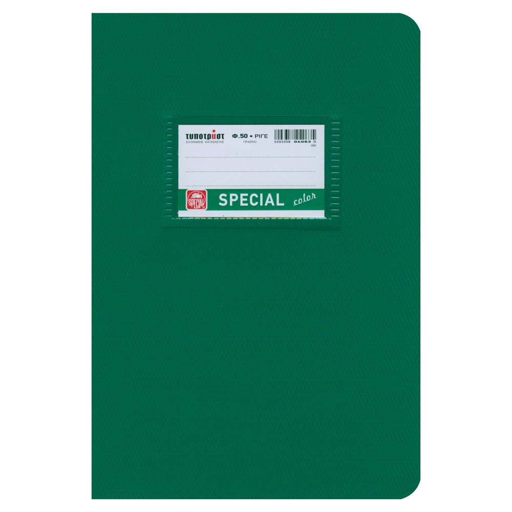 Κλασικό Special Τετράδιο 50 φύλλων, διάστασης B5 (17X25) με χρωματιστό ανάγλυφο πλαστικό εξώφυλλο.