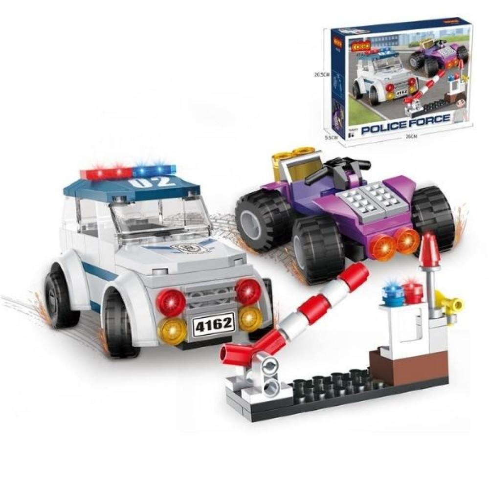 Σετ τουβλάκια κατασκευής Αστυνομικό όχημα, μηχανή, μπάρα και 2 φιγούρες. Περιέχει 166μχ. Διαστάσεις συσκευασίας: 26x21x6cm Κατάλληλο για ηλικίες 6+ Προσοχή! Δεν είναι κατάλληλο για παιδιά κάτω των 3 ετών, μικρά μέρη - κίνδυνος πνιγμού.