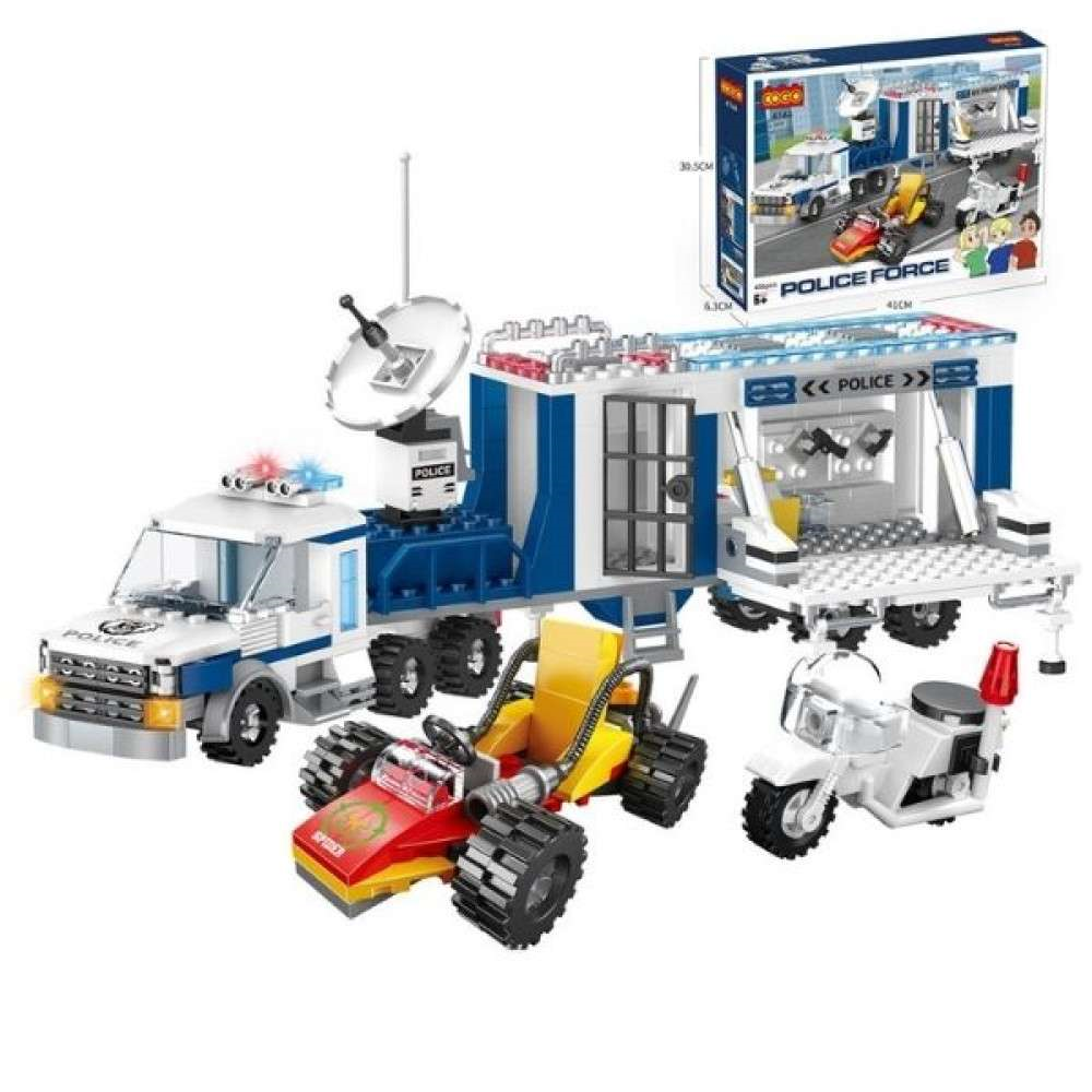 Σετ τουβλάκια κατασκευής Αστυνομικό φορτηγό-κέντρο επιχειρήσεων, με 2 ακόμα οχήματα. Περιέχει 406τμχ. Διαστάσεις συσκευασίας: 41x31x6cm Κατάλληλο για ηλικίες 6+ Προσοχή! Δεν είναι κατάλληλο για παιδιά κάτω των 3 ετών, μικρά μέρη - κίνδυνος πνιγμού.