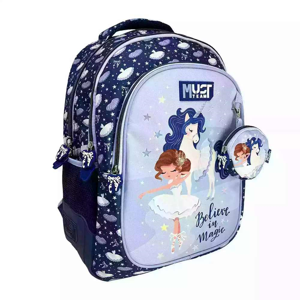 Η Σχολική Τσάντα Πλάτης Δημοτικού Must Team Believe In Magic με 3 θήκες είναι η ιδανική επιλογή για κάθε μαθήτρια που θέλει να συνδυάσει στυλ, άνεση και ιδιαίτερη εμφάνιση στο σχολείο! Πρακτική και ανθεκτική σχολική τσάντα δημοτικού με εργονομικό σχεδιασμό για ασφαλή, άνετη και εύκολη μεταφορά όλων των απαραίτητων σχολικών ειδών στο σχολείο. Ένα ξεχωριστό σακίδιο πλάτης δημοτικού με σχέδιο μονόκερος και ολόγραμμα μπαλαρίνας που θα ενθουσιάσει!