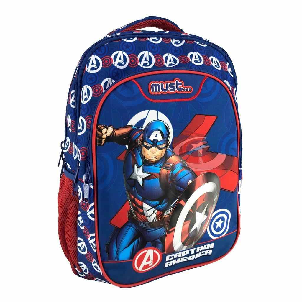 Σχολική Τσάντα Πλάτης Δημοτικού Avengers Captain America Must με 3 θήκες για μαθητές που δεν αποχωρίζονται τους αγαπημένους παιδικούς ήρωες ακόμα και μέσα στην τάξη!