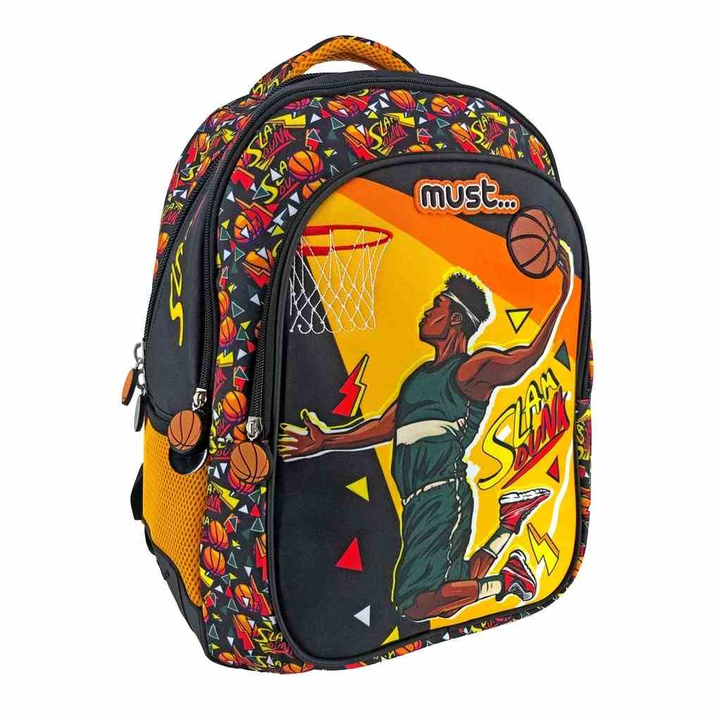 Η Σχολική Τσάντα Πλάτης Δημοτικού Must Slam Dunk με 3 θήκες σε εντυπωσιακό σχέδιο μπασκετμπολίστας που καρφώνει με πραγματική υφή μπάλας μπάσκετ για τους λάτρεις του μπάσκετ!