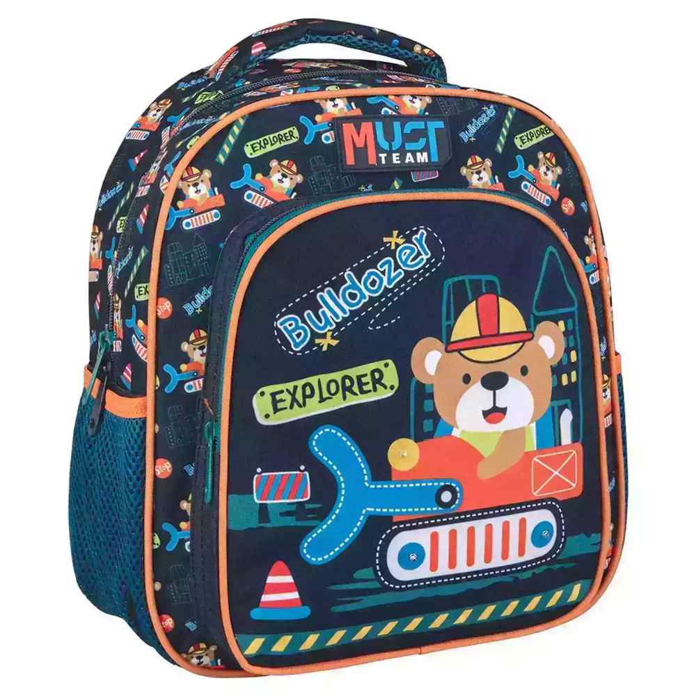 Η Σχολική Τσάντα Πλάτης Νηπίου Must Team Bulldozer ξεχωρίζει για το εντυπωσιακό σχέδιο αρκουδάκι που οδηγεί μπουλντόζα και τα ενσωματωμένα LED φώτα με λειτουργία χτύπα για να ανάψει, προσφέροντας μια μοναδική και διασκεδαστική εμπειρία χρήσης στο σχολείο. Ιδανική τσάντα πλάτης προσχολικής ηλικίας που μεταφέρει με ασφάλεια, άνεση και ευκολία όλα τα απαραίτητα σχολικά είδη στον παιδικό σταθμό και το νηπιαγωγείο.