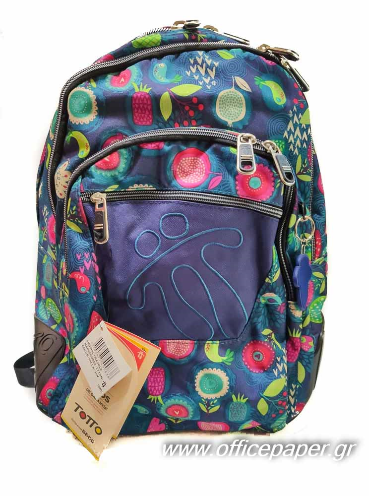 Ποιοτικό σακίδιο Totto γερά φερμουαρ ενισχυμένο αδιάβροχο ύφασμα και πλάτη.