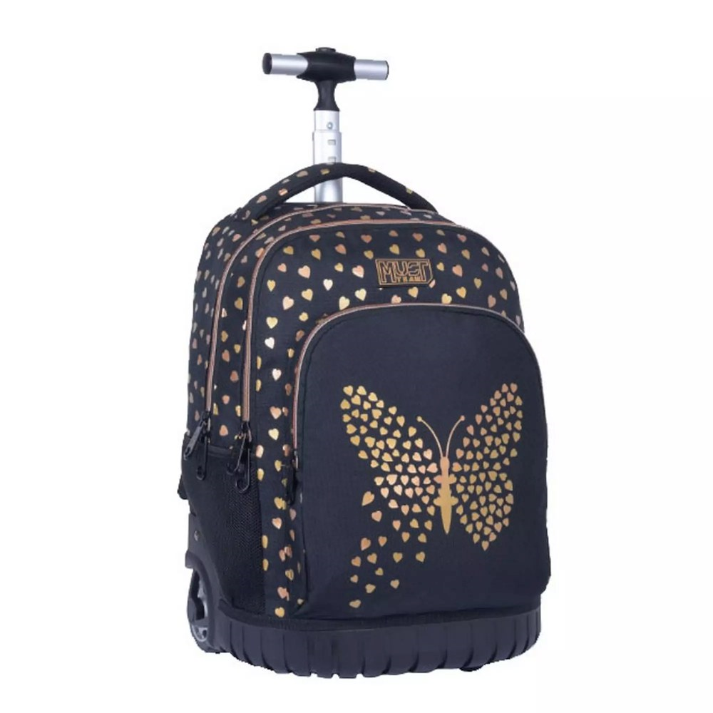 Σχολική Τσάντα Τρόλεϊ Δημοτικού Must Team Gold Butterfly με 3 θήκες σε εντυπωσιακό σχέδιο με πεταλούδα ! Πρακτική και ανθεκτική σχολική τσάντα με εργονομικό σχεδιασμό και τηλεσκοπική λαβή για ασφαλή, άνετη και εύκολη μεταφορά όλων των απαραίτητων σχολικών ειδών στο σχολείο. Μια ξεχωριστή σχολική τσάντα δημοτικού που συνδυάζει την άνεση ενός σακιδίου με την πρακτικότητα ενός τρόλεϊ.