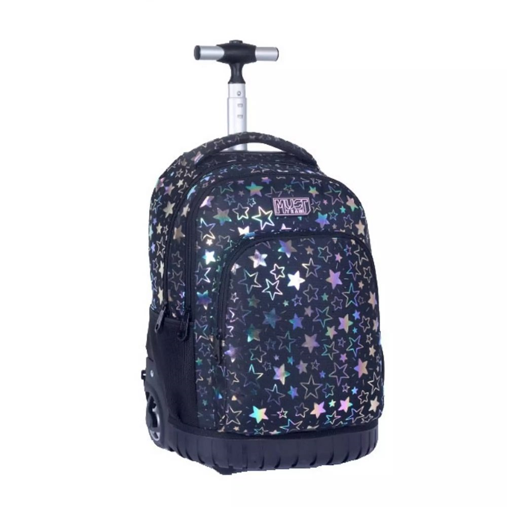 Σχολική Τσάντα Τρόλεϊ Δημοτικού Must Team Hologram Stars με 3 θήκες σε εντυπωσιακό σχέδιο με ιριδίζον αστέρια ! Πρακτική και ανθεκτική σχολική τσάντα με εργονομικό σχεδιασμό και τηλεσκοπική λαβή για ασφαλή, άνετη και εύκολη μεταφορά όλων των απαραίτητων σχολικών ειδών στο σχολείο. Μια ξεχωριστή σχολική τσάντα δημοτικού που συνδυάζει την άνεση ενός σακιδίου με την πρακτικότητα ενός τρόλεϊ.