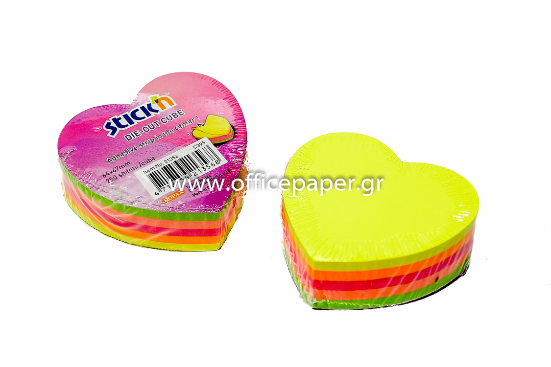 ΧΑΡΤΑΚΙΑ ΑΥΤΟΚ.STICKN 67Χ67mmΧ250Φ ΚΑΡΔΙΑ FLUO No 21356
