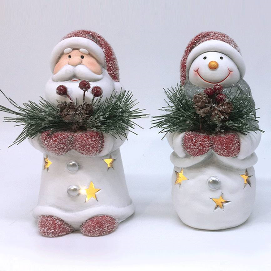 Αι Βασίλης & Χιονάνθρωπος με Κουκουνάρια φως LED 9.3x9x16.5cm