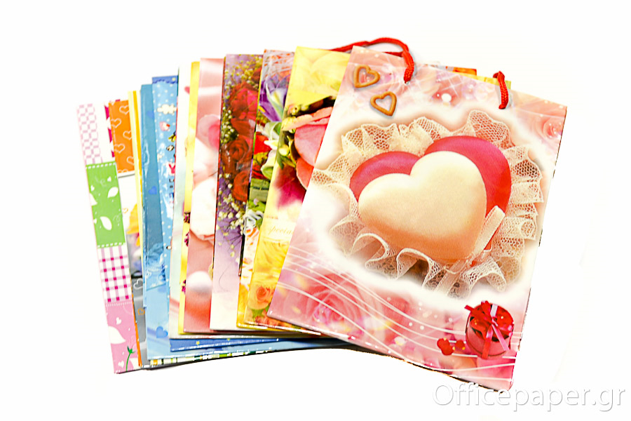 Χάρτινη σακούλα δώρου με κορδόνι σε διάφορα σχέδια.