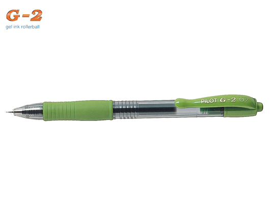 Brand: PilotΣυλλογή: G-2Τύπος: GelΤύπος Μύτης: MediumΠάχος Μύτης: 0.7 mmΠάχος Γραφής: 0.39 mmΚλείσιμο: Με κουμπίΔέχεται Ανταλλακτικό: ΝαιΧρώμα: Λαχανί
