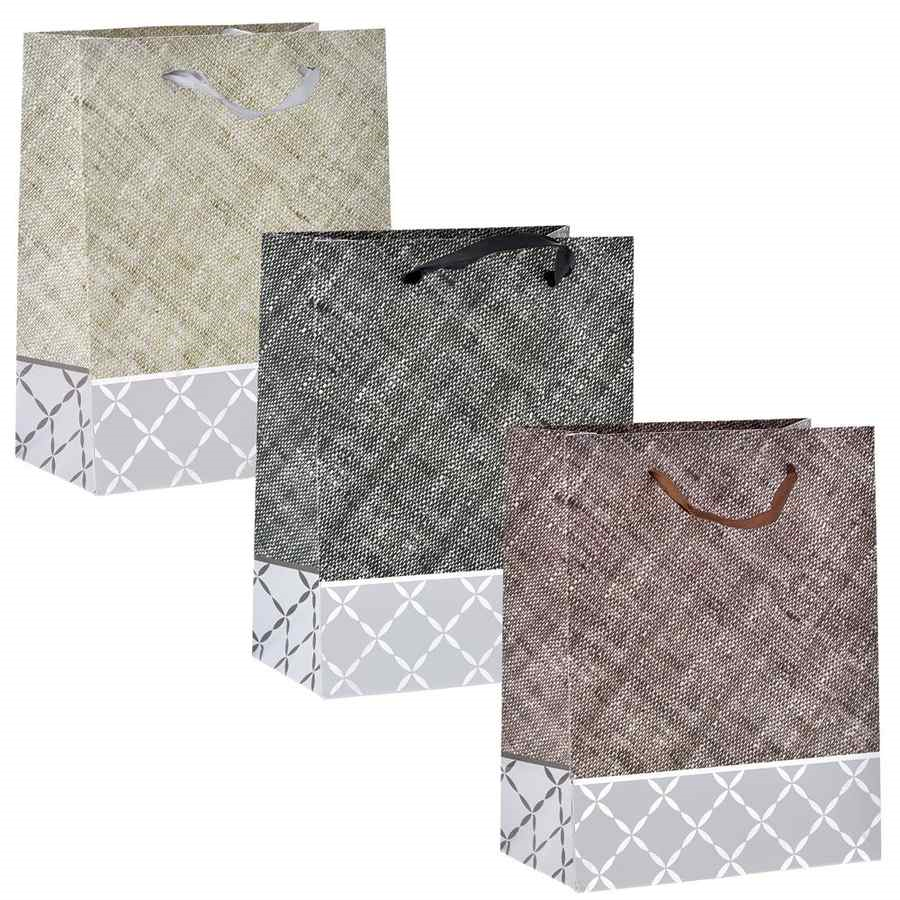 Τσάντα χάρτινη 3 σχέδιο λινό σε 3 αποχρώσεις.
